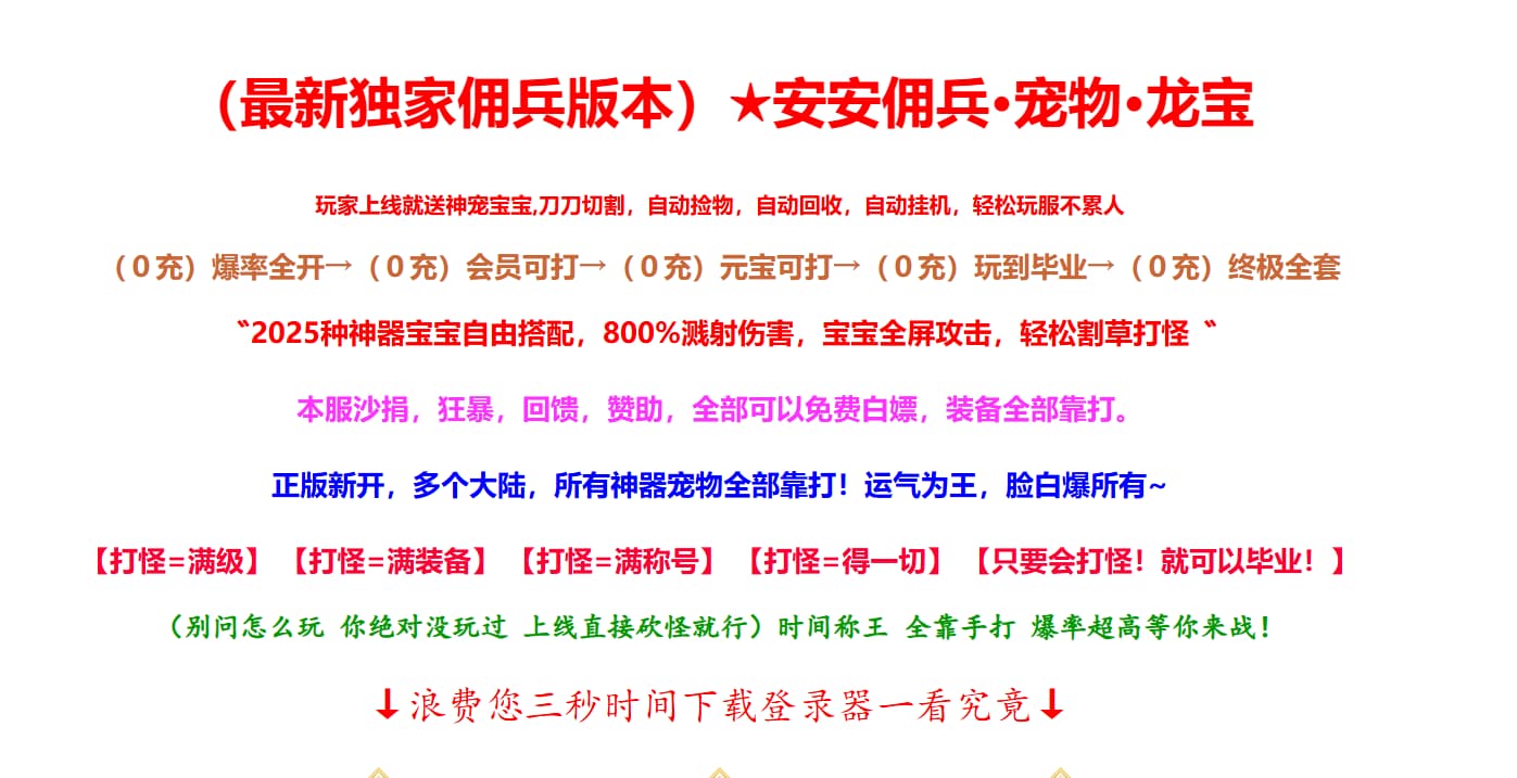 独家宠物版本,创新玩法 爆率全开 全新地图 爽到家