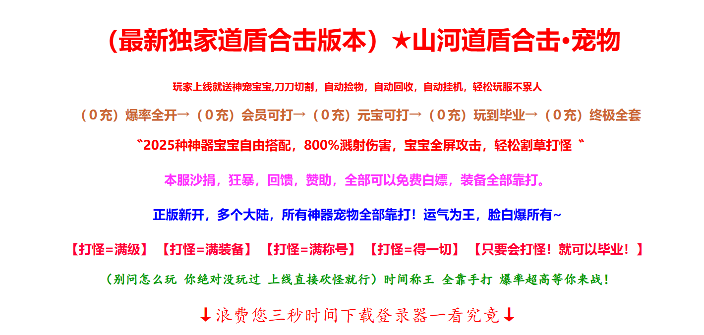 独家宠物版本,创新玩法 爆率全开 全新地图 爽到家